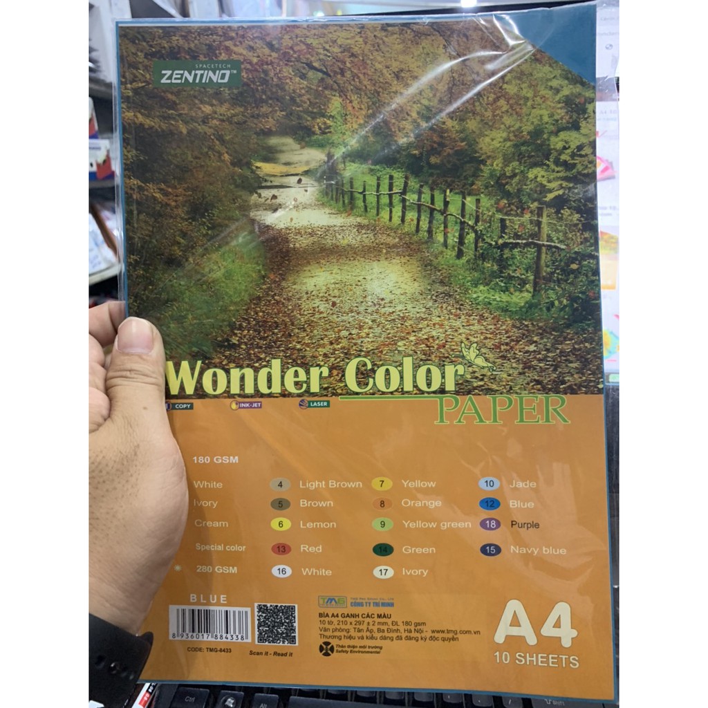 Bìa ganh A4 Zentino 180gsm Wonder Color Xanh Dương