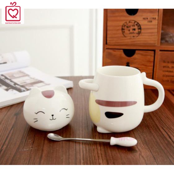 Giới thiệu Cốc sứ chú mèo lắm chiêu 400ml + thìa + nắp sứ (nhiều mẫu) - Quà sinh nhật, bạn gái, đồng nghiệp