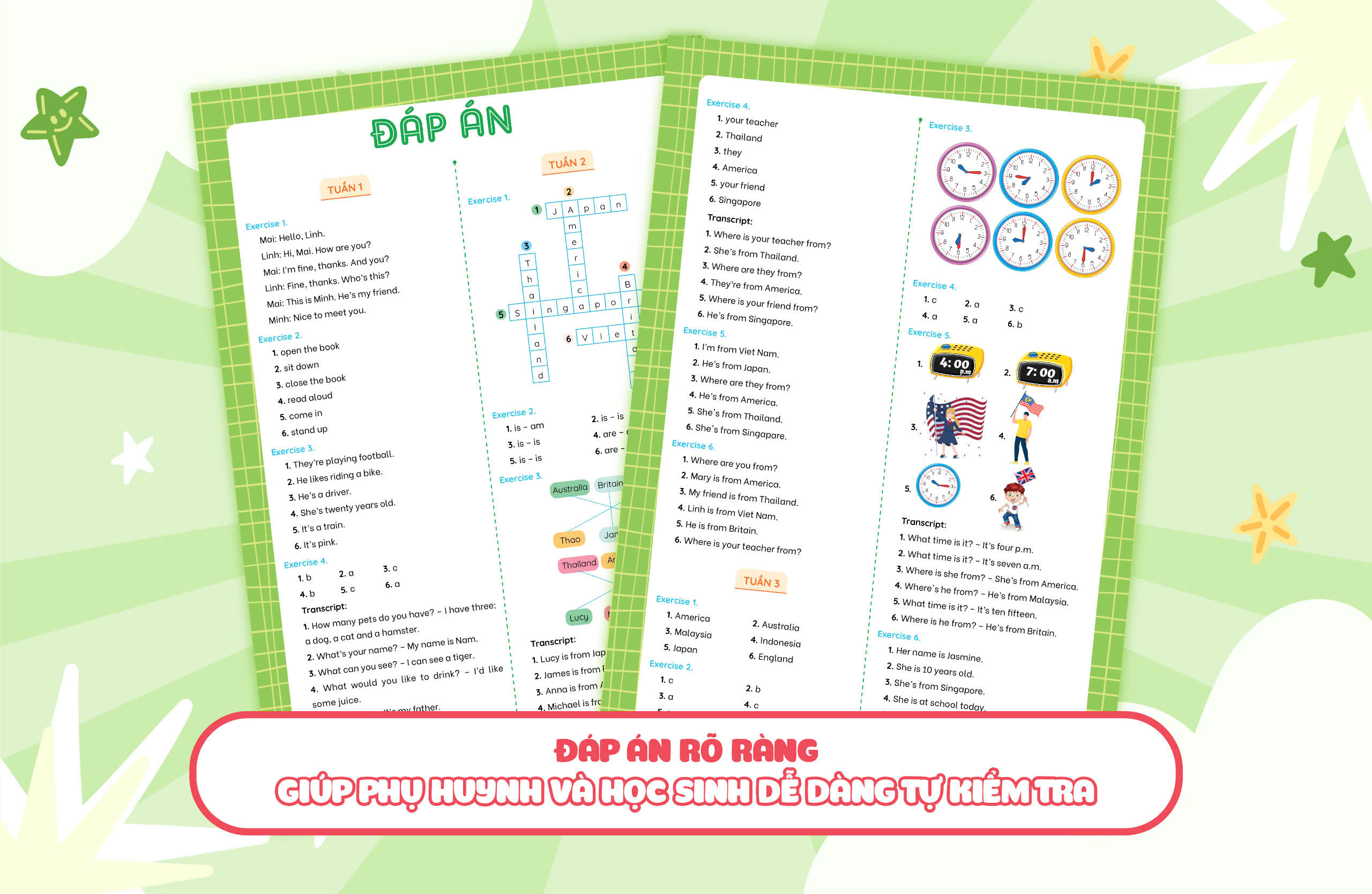 Phần đáp án chi tiết ở cuối sách giúp phụ huynh và các con có thể tự đối chiếu và đánh giá sau khi hoàn thành bài tập, từ đó có phương pháp ôn luyện phù hợp cho con.