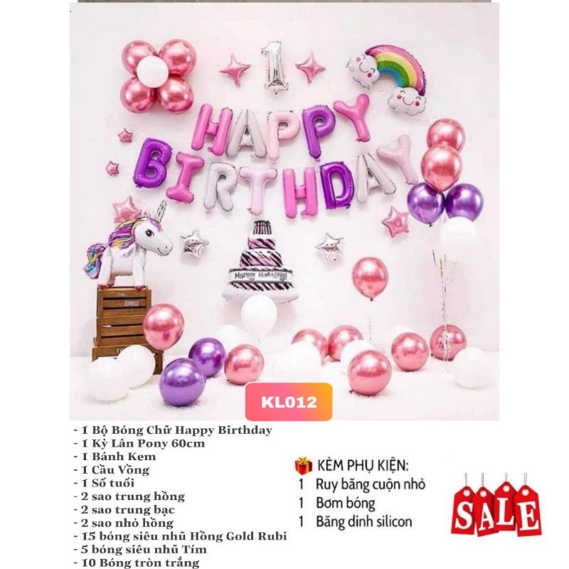 Combo set bóng bay sinh nhật, trang trí thôi nôi, đầy tháng bé gái pony unicorn - PC056: