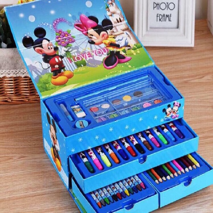 ❤️ Hộp quà gồm có hộp bút sáp 12 màu, bút lông 12 màu, thước kẻ, hộp bút chì 12 màu, cục tẩy, gọt bút chì, keo dán, 12 màu nước vẽ, cọ vẽ.
