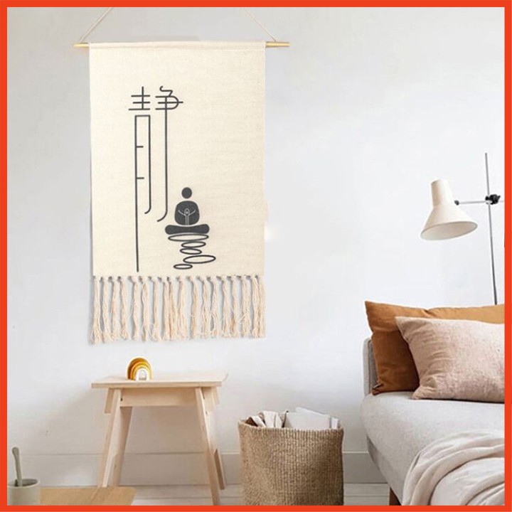 Giới thiệu [Giảm giá sốc] Thảm treo tường tua rua phong cách vintage 50x70cm + Tặng kèm thanh gỗ, dây treo, đinh tàng hình