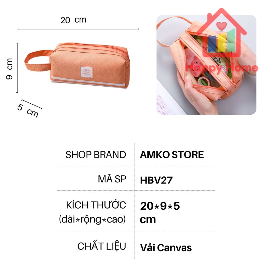 Mô tả sản phẩm Hộp bút vải đẹp 2 ngăn tiện dụng đa năng, túi đựng bút vải canvas Oxford kiểu Hàn Quốc Happy Home: