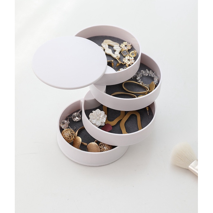 Hộp đựng trang sức bông tai đủ màu 4 tầng xoay 360