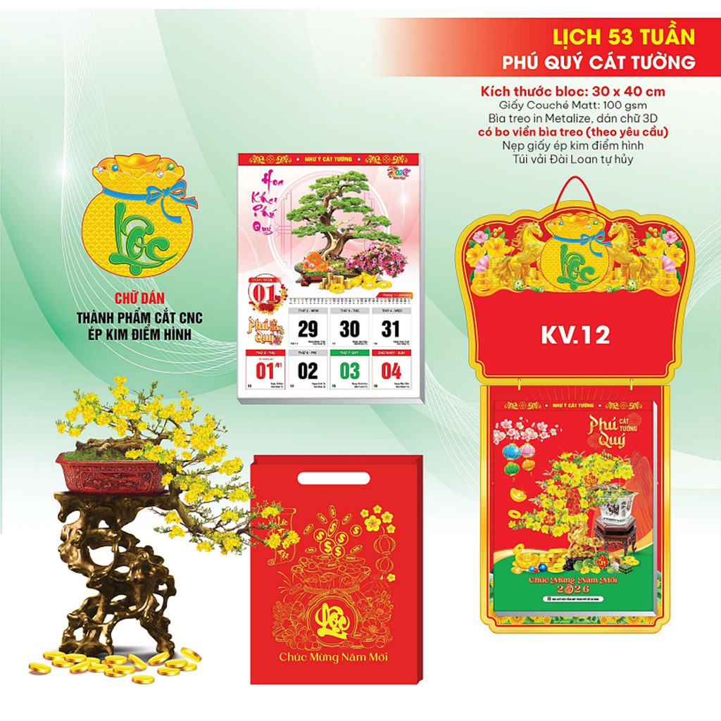 Giới thiệu Lịch Treo Tường 52 Tuần - LỊCH TẾT 2026 - Lịch Treo Tường 53 Tuần 2026 (30 x 40 cm)
