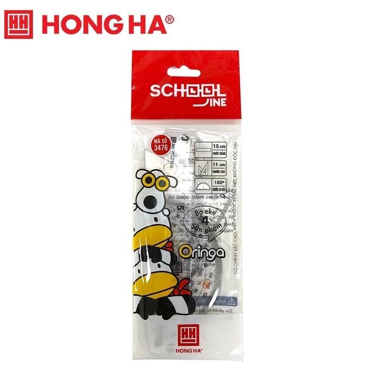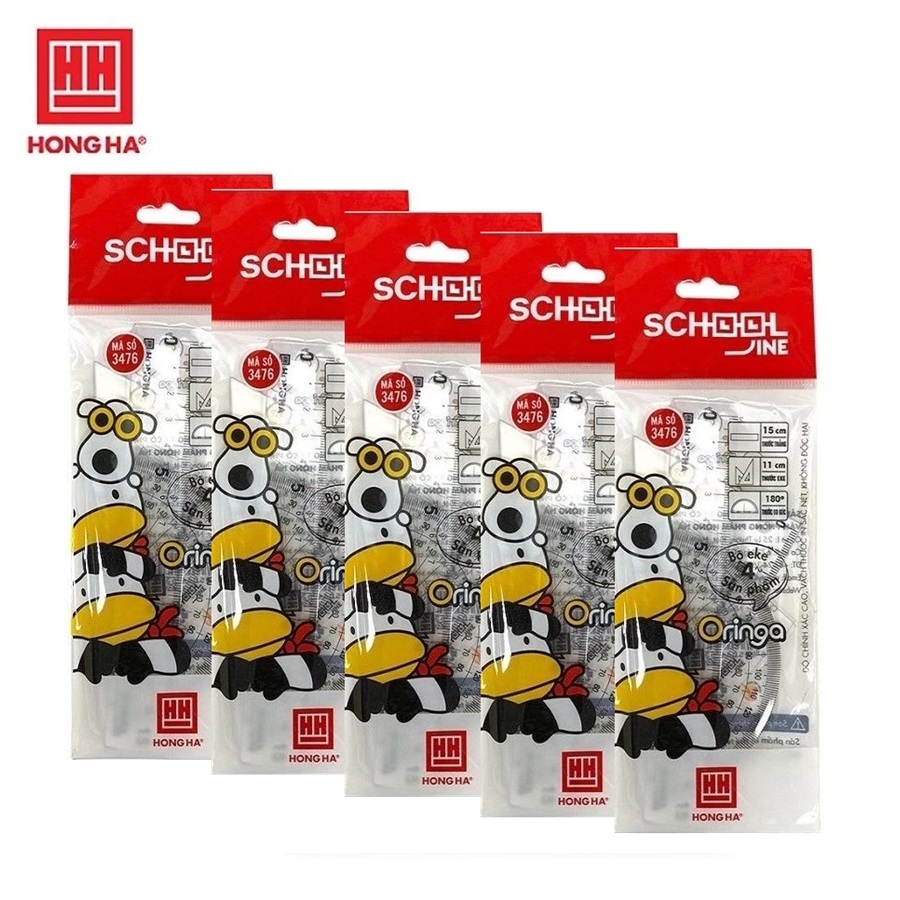 Lốc 5 bộ eke nhựa 4 sản phẩm Hồng Hà 3476 / Bộ thước kẻ eke 4 món