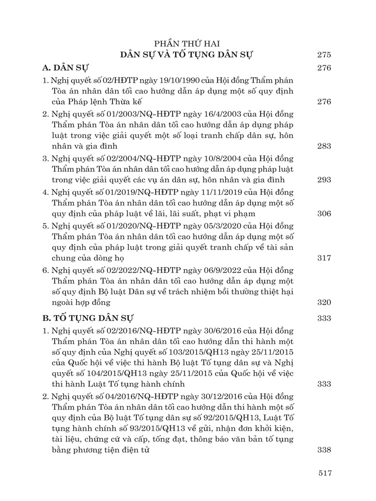 Phần thứ hai: Giới thiệu các nghị quyết về lĩnh vực dân sự và tố tụng dân sự.