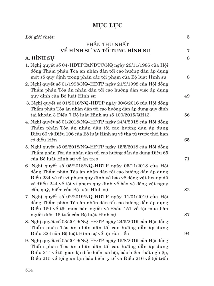 Phần thứ nhất: Giới thiệu các nghị quyết về lĩnh vực hình sự và tố tụng hình sự.