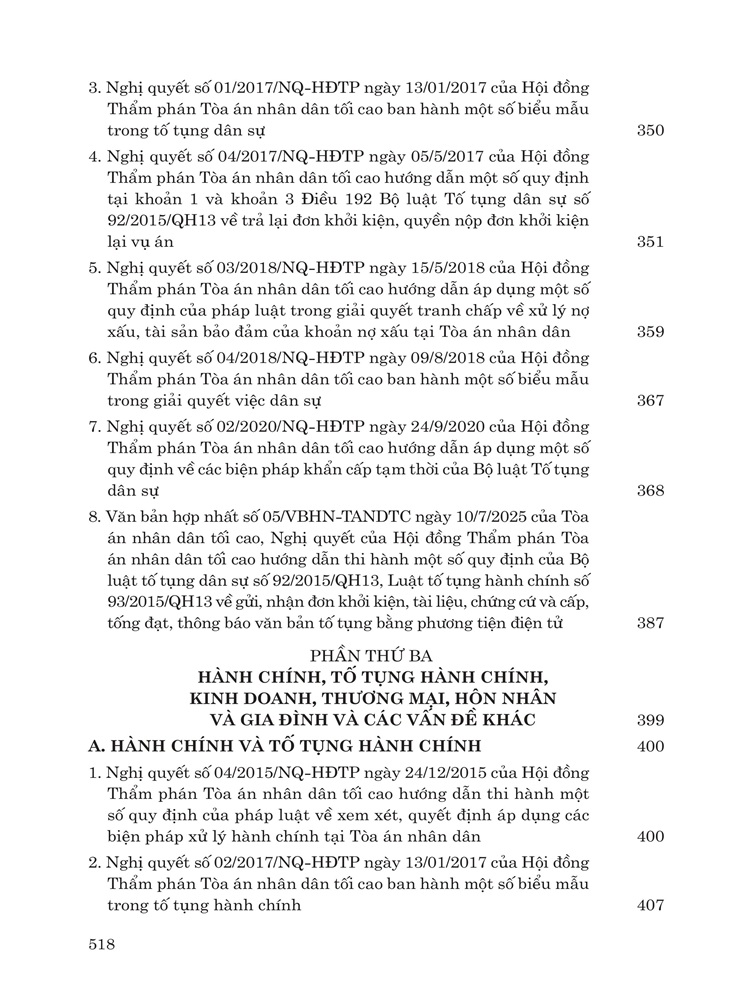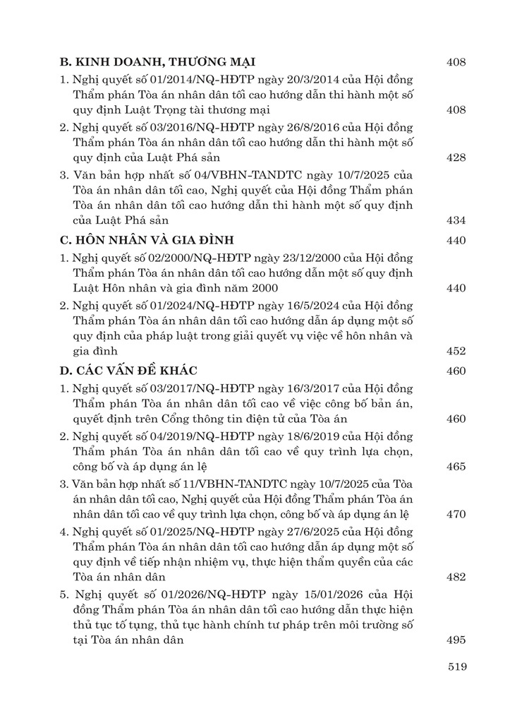 Với mục đích tuyên truyền, phổ biến và hướng dẫn bạn đọc tra cứu các nghị quyết của Hội đồng Thẩm phán Tòa án nhân dân tối cao, Nhà Xuất bản Lao Động xuất bản cuốn sách “Các nghị quyết của Hội đồng Thẩm phán Tòa án nhân dân tối cao về hình sự, tố tụng hình sự, dân sự, tố tụng dân sự, hành chính, kinh doanh, thương mại, hôn nhân và gia đình từ năm 1986 đến năm 2026”.