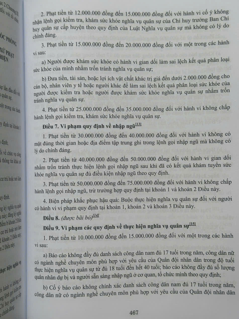 Phần thứ năm. Quy định về xử phạt vi phạm hành chính trong lĩnh vực quốc phòng, cơ yếu