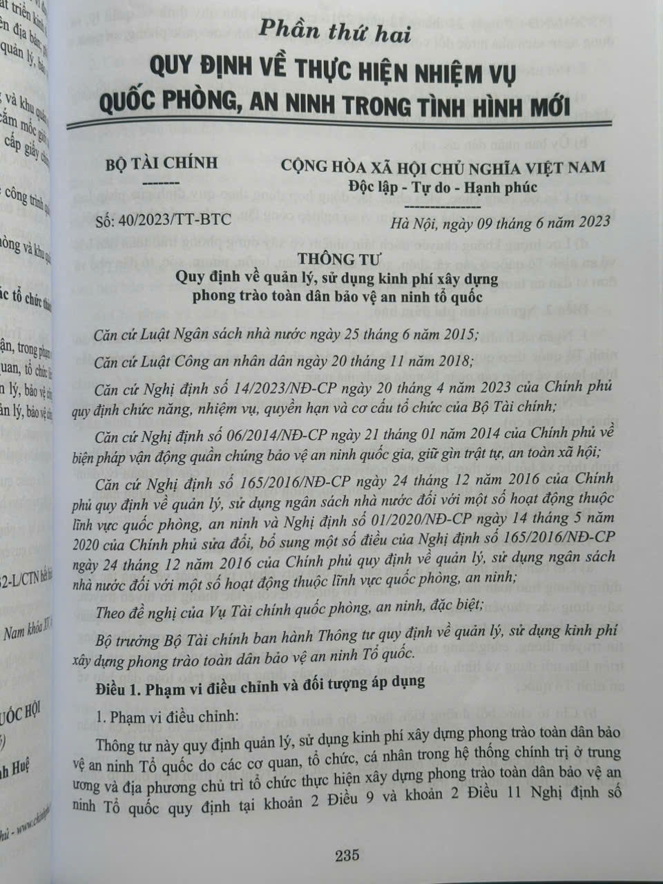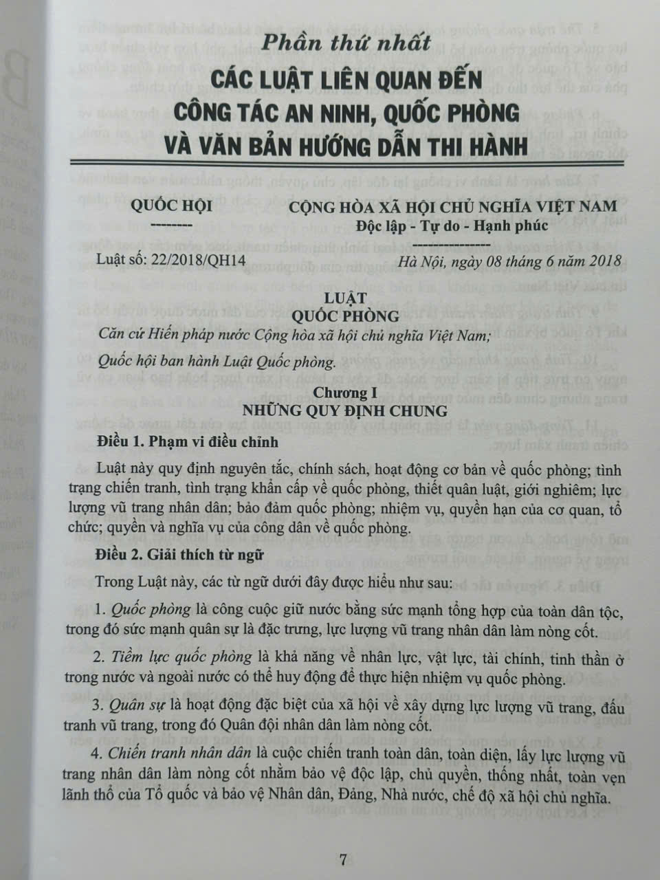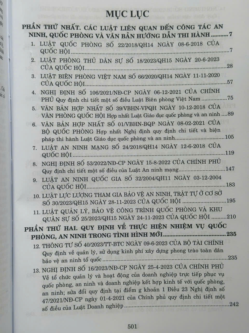 Phần thứ nhất. Các Luật liên quan đến công tác an ninh, quốc phòng và văn bản hướng dẫn thi hành