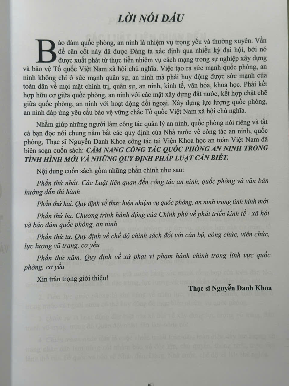 Nhằm giúp những người làm công tác quản lý an ninh, quốc phòng nói riêng và tất cả bạn đọc nói chung nắm bắt các quy định của Nhà nước về công tác an ninh, quốc phòng, Thạc sĩ Nguyễn Danh Khoa công tác tại Viện Khoa học an toàn Việt Nam đã biên soạn cuốn sách: CẦM NANG CÔNG TÁC QUỐC PHÒNG AN NINH TRONG TÌNH HÌNH MỚI VÀ NHỮNG QUY ĐỊNH PHÁP LUẬT CẦN BIẾT.