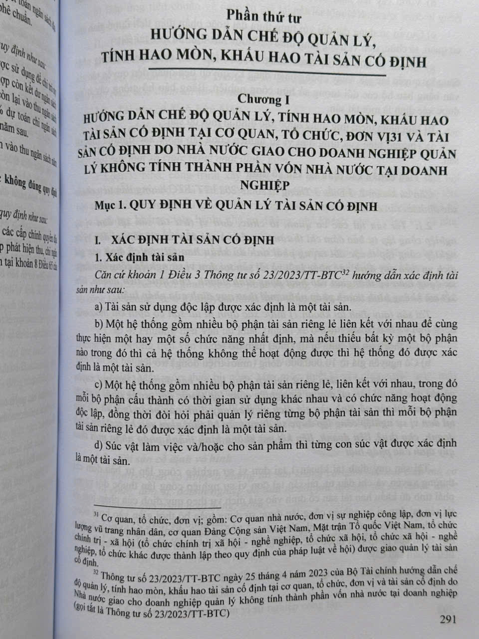 Phần thứ tư. Hướng dẫn chế độ quản lý, tính hao mòn, khấu hao tài sản cố định