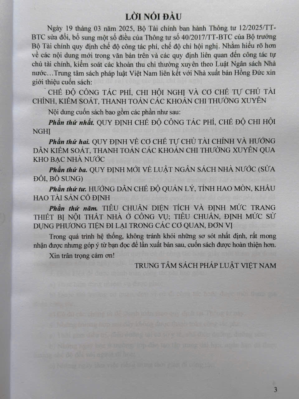 Nhằm hiểu rõ hơn về các nội dung mới trong văn bản trên và các quy định liên quan đến công tác tự chủ tài chính, kiểm soát các khoản thu chi thường xuyên theo Luật Ngân sách Nhà nước… Nhà sách Nam Việt xin trân trọng giới thiệu cuốn sách: Chế độ Công Tác Phí, Chi Hội Nghị và Cơ Chế Tự Chủ Tài Chính, Kiểm Soát, Thanh Toán các Khoản Chi Thường Xuyên theo Thông tư số 12/2025/TT-BTC