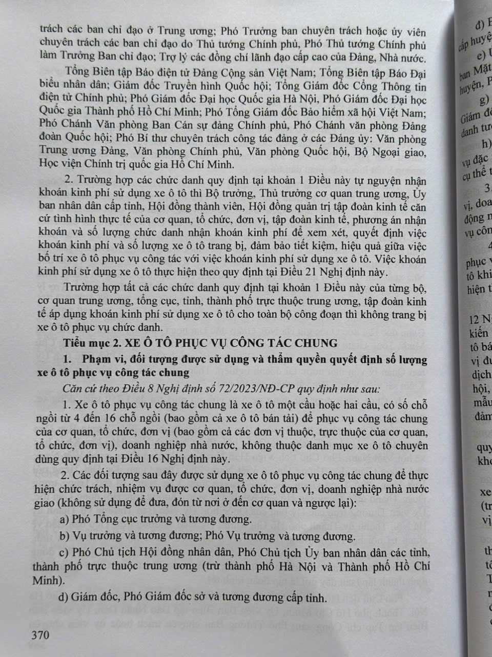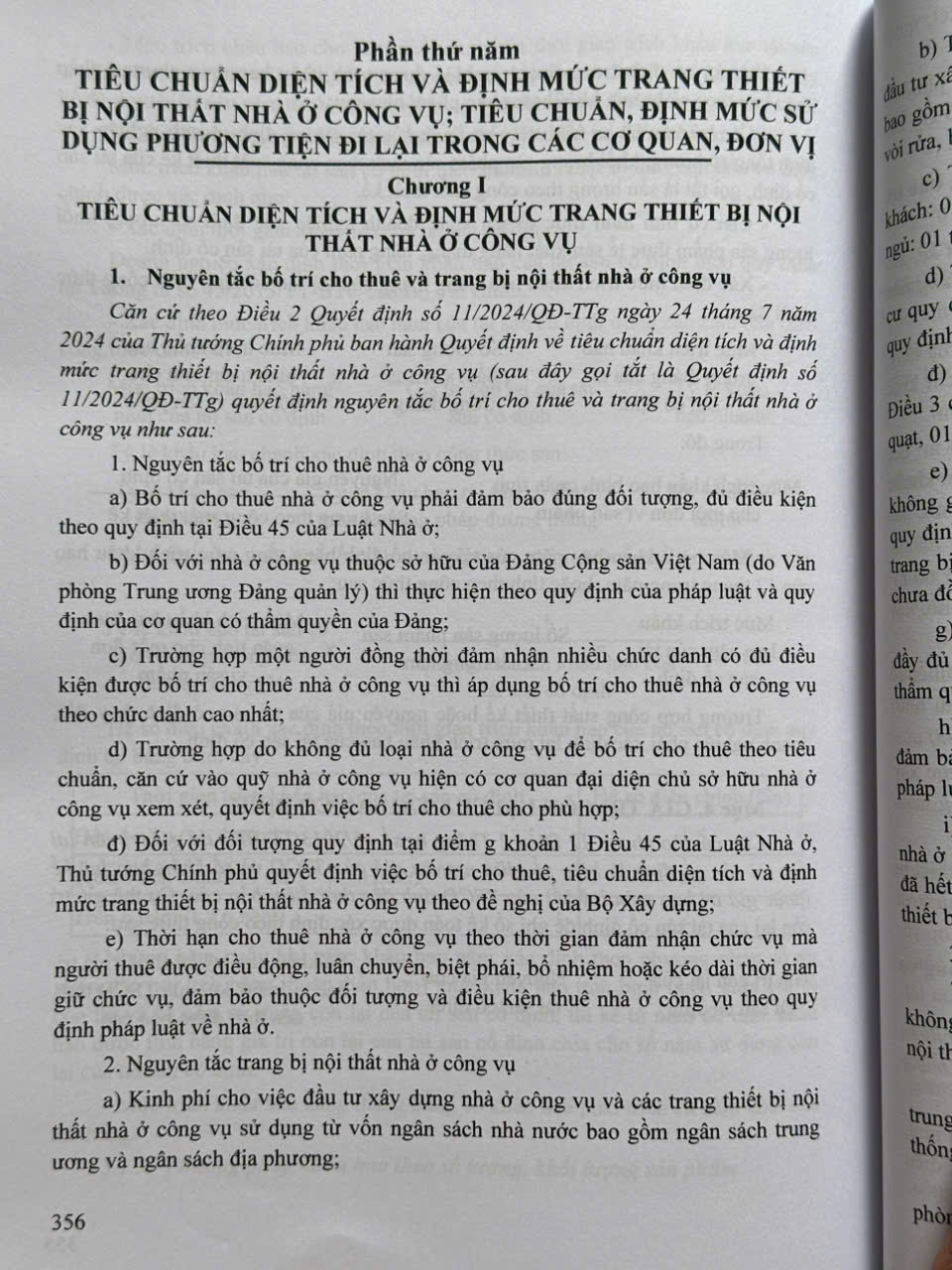 Phần thứ năm. Tiêu chuẩn diện tích và định mức trang thiết bị nội thất nhà ở công vụ; tiêu chuẩn, định mức sử dụng phương tiện đi lại trong các cơ quan, đơn vị