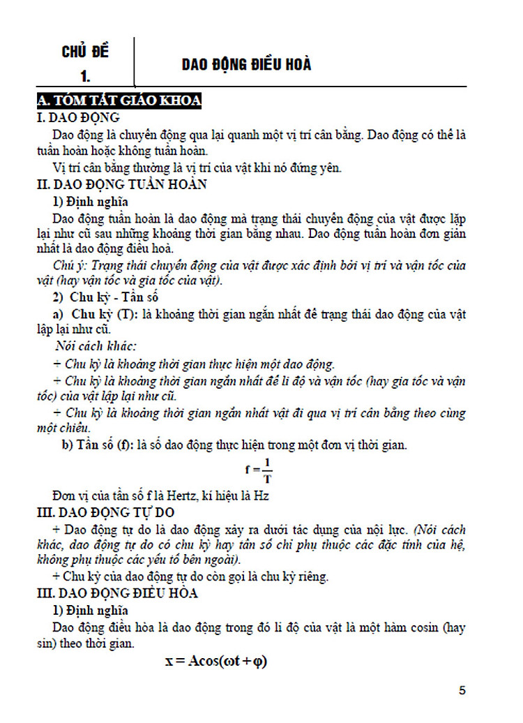 Phần A. TÓM TẮT SGK: Nêu đầy đủ các kiến thức cần thiết (lí thuyết, công thức và phương pháp giải) mà học sinh cần nắm vững.