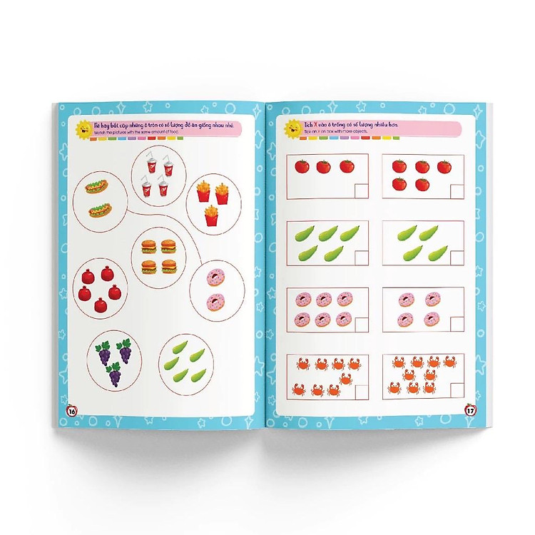Cuốn sách giúp các bé làm quen với các khái niệm toán học ban đầu như phân biệt giống nhau – khác nhau, so sánh to – nhỏ, lớn – bé, dài – ngắn … làm quen với các con số, hình dạng, nối hình, phân loại logic …giúp trẻ rèn kĩ năng tập trung, tư duy logic và phán đoán giải quyết vấn đề linh hoạt.