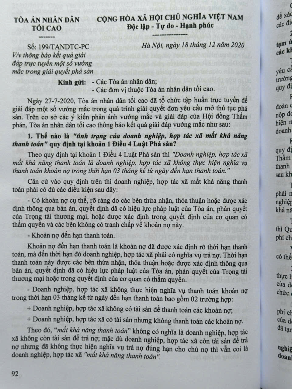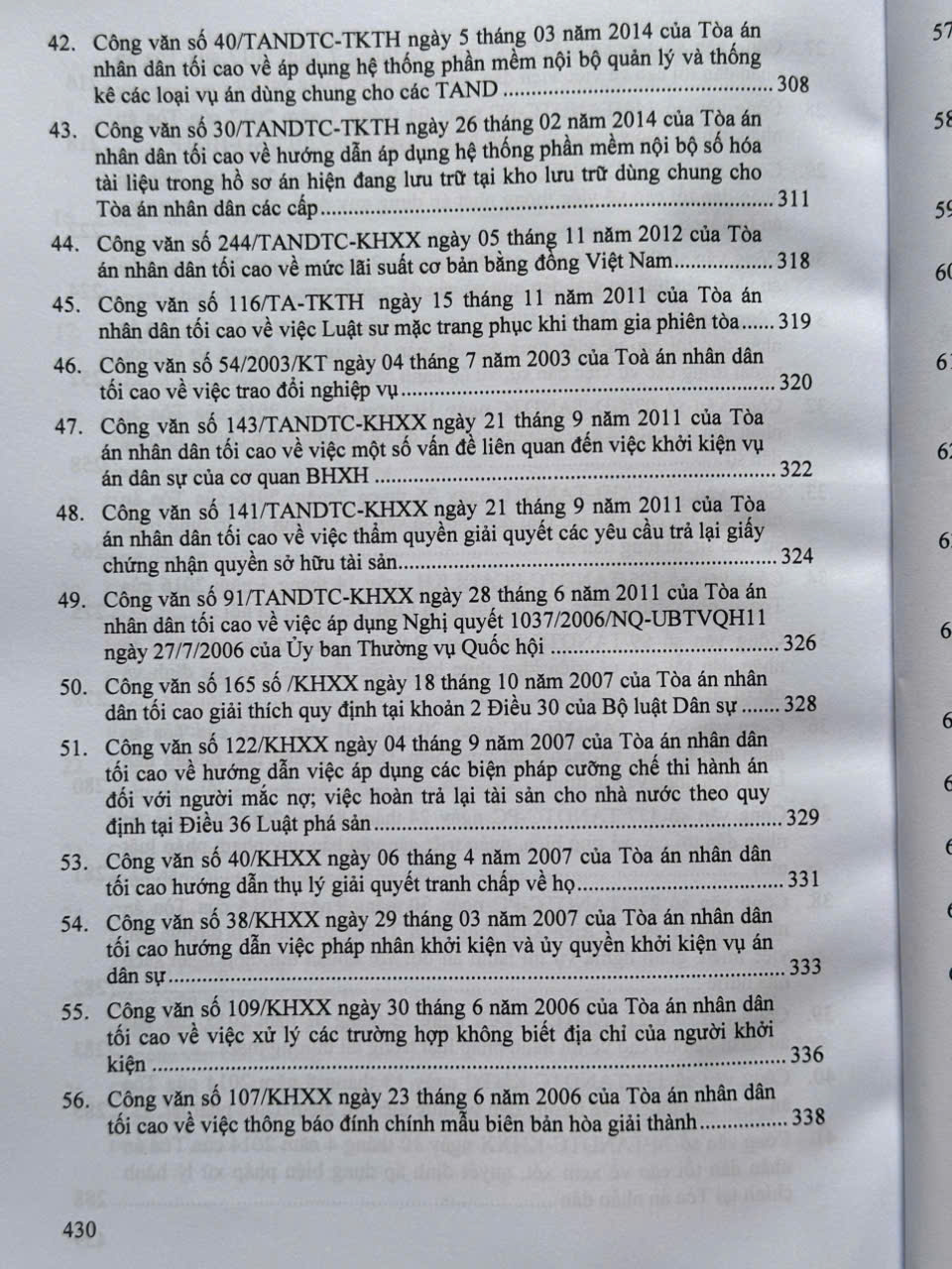 Sách Tổng Hợp Công Văn Của Tòa Án Nhân Dân Tối Cao Hướng Dẫn Nghiệp Vụ và Giải Đáp Thắc Mắc Trong Lĩnh Vực Dân Sự, Tố Tụng Dân Sự