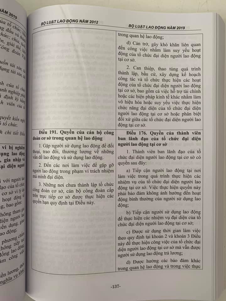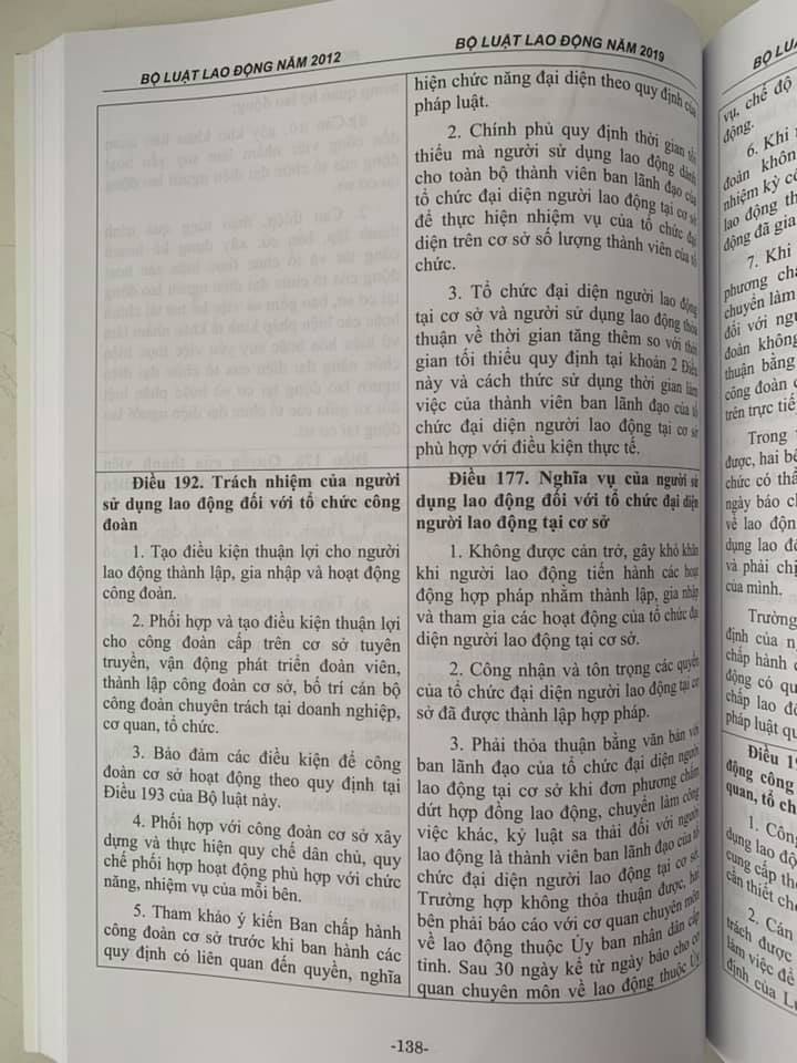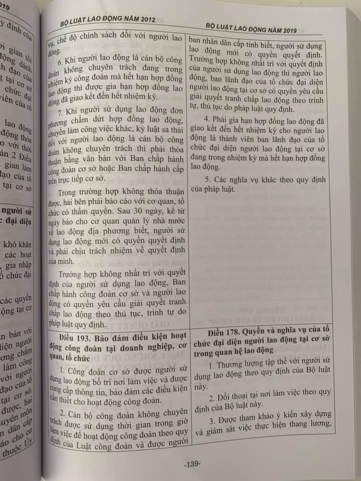 động khi so sánh 220 Điều của Bộ luật Lao động năm 2019 với 242 Điều của Bộ luật Lao động năm 2012.