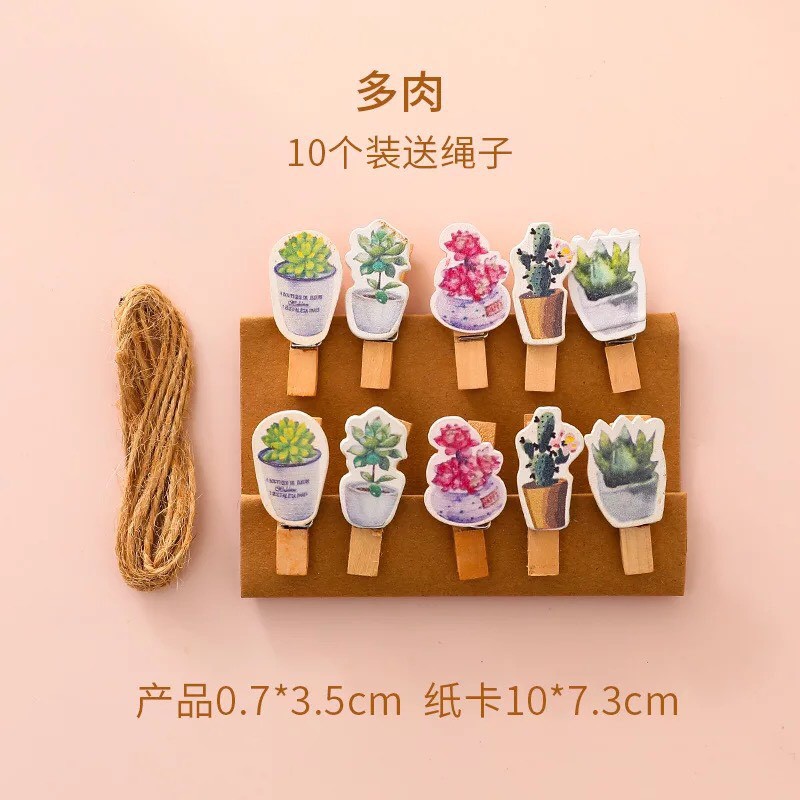 Nhà cửa & Đời sống > Trang trí tiệc tùng > Kẹp gỗ || Sét 10 kẹp gỗ dễ thương Zanmoo (Tặng kèm 1.2 mét dây cói)