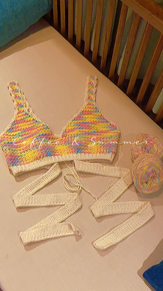 Trả lời: Với thành phẩm là áo bikini hoặc croptop chập sợi thì cần khoảng 3-4 cuộn ctvn loang