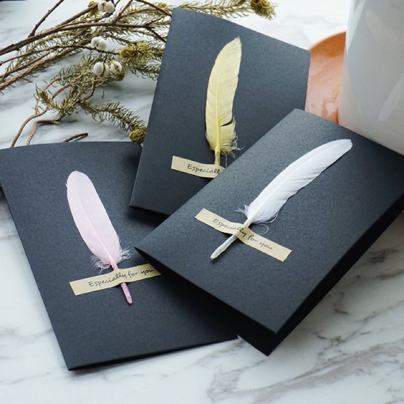 Văn Phòng Phẩm > Thư Tín > Bưu Thiếp || Thiệp Đen Có Đính Lông Vũ Gấp Đôi Kích Thước 10,5 x 17,2cm,Thiệp Kraft Vintage Đính Lông Vũ, Thiệp Handmade Cao Cấp